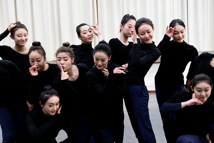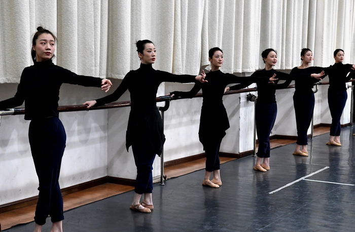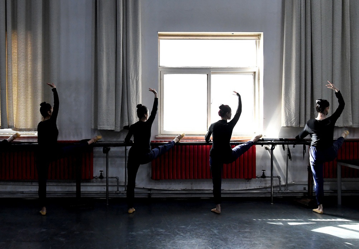 演员在排练厅内练功(2月20日摄)。现代舞蹈演员大多纤瘦苗条,让她们呈现出舞台上的圆润效果并不容易。