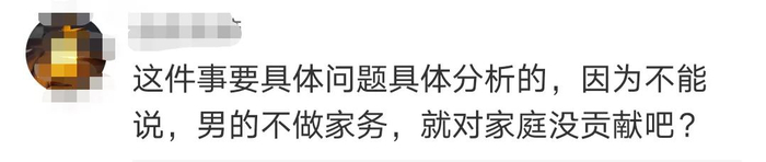 在评论区里,许多网友吵翻了。有的人觉得“补偿5万元实在太少”,也有人认为“这已经是一种进步了”,还有网友提出“不能因为男性不做家务,就是没做贡献”的观点。