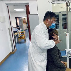 治疗过程中患者骨骼咯咯作响,但一位患者却笑着对记者说:“声音听着让人害怕,其实并不痛。”接受朱烱伟医生治疗14年的高女士更是盛赞:“朱主任医术和医德都很棒,我们已经成了朋友。”将信将疑,记者在门诊结束后体验了“寰枢关节骨错缝正骨手法三部”,只觉朱烱伟医生用大拇指在脑后风池穴外侧迅疾轻巧地按压一下,随即发出清脆的响声,并无痛感。站起身来,记者感到颈椎明显舒缓了不少,轻盈松快,滞涩酸痛顿消。