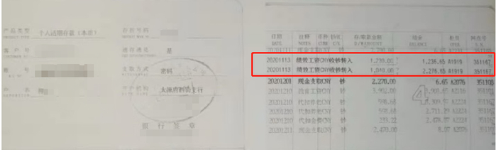 在一张户名为柳某的银行存折流水中,红星新闻记者看到:2020年11月13日曾有2笔标注为绩效工资的钱存入,分别是1230元和1040元。对此,前述太原市教育局人事科工作人员表示,目前该情况仍在协调沟通中,相关人员并未注意到柳某“吃空饷”的情况,“会上报给领导,尽快处理。”