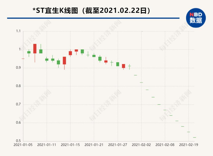 2月22日,*ST宜生发布公告称,由于公司股票已连续20个交易日每日收盘价均低于人民币1元,触及上交所《股票上市规则》第13.2.1条规定的强制退市条件,公司股票自2月23日开市起停牌。同日,*ST宜生还收到上交所《关于拟终止宜华生活科技股份有限公司股票上市的事先告知书》,上交所拟对*ST宜生股票作出终止上市的决定。