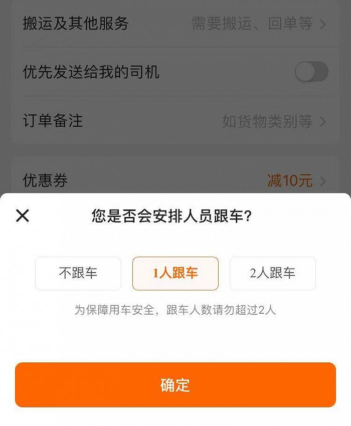货拉拉是同城货运领域的头部企业,许多人搬家或运送大件物品会通过货拉拉租车。尽管货拉拉提供的是货车租用服务,但为了照看货物以及方便出行,货主通常会跟车前往目的地,货拉拉在下单页面上也提供了跟车选项。甚至有一些消费者,打车高峰期间叫不到网约车,会叫货拉拉把自己送到目的地,并戏称“货就是人”。