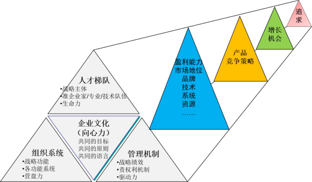 可以这么讲,这四个方面,人才梯队是组织的生命力;管理机制是组织的驱动力;组织体系是组织的“能力营盘”,是营盘力;企业文化是组织的“导向”,是向心力。