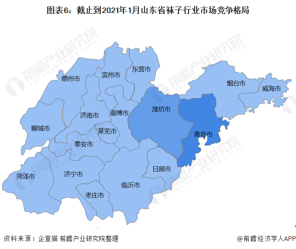 山东省作为拥有中国针织名城(山东省青岛市即墨区)和中国纺织产业基地市(山东省滨州市)两大集群基地,而原材料的充足补给给了山东省袜业的高速发展机会。