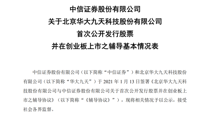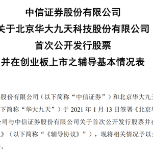 2月23日,证监会披露了华大九天上市辅导信息。华大九天拟首次公开发行股票并在创业板上市,辅导机构为中信证券。中信证券与华大九天今年1月13日签署了辅导协议。