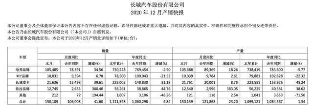 2019年,车市低迷,国内汽车销售市场同比下滑9.3%,但长城依然逆势增长0.7%,全年销量达到了106万台。这也是销量排行前10的自主汽车品牌中表现最好的。