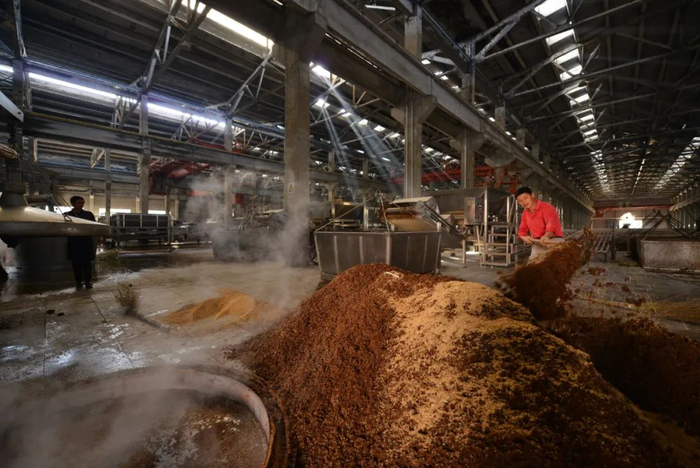 混蒸混烧是新粮食与发酵好的酒醅混合一起蒸馏,在蒸酒的同时将粮食蒸熟,不仅节约能源,还能充分将粮食中的粮香带入酒中。