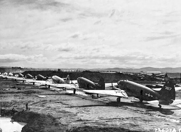 抗日战争期间,停放在云南驿机场的 “驼峰航线” 运输机。