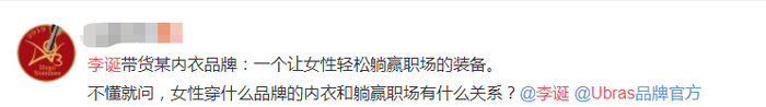 媒体截图显示,日前,李诞在微博发布Ubras品牌官方的微博视频,并配文“#我的职场救身衣#,一个让女性轻松躺赢职场的装备@Ubras品牌官方,我就说没有我带不了的货,你就说信不信吧。”目前,李诞微博已无法搜索到该条营销文案。