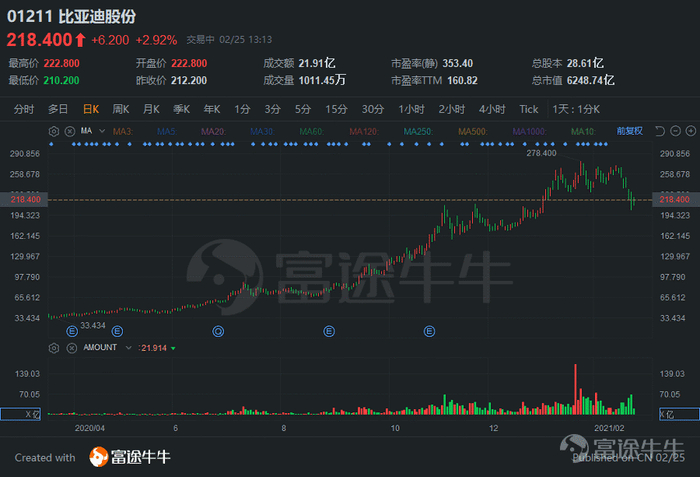 过去几年比亚迪股价涨幅很快,因为它处在非常有利的行业地位,抓住了新能源车转型的机会。