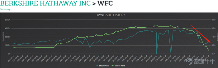 根据近期披露20Q4 13F持仓,伯克希尔在四季度大手笔减持了$富国银行(WFC.US)$,减持比例达58%,位列当季度减持幅度最大的个股,持股数量降至5242万股,持仓的市值仅为15亿美元。