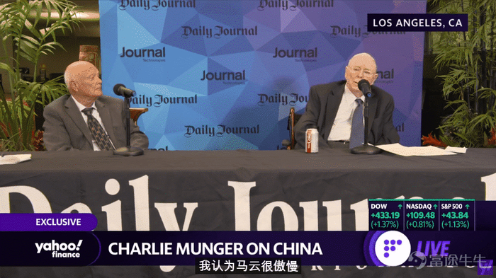 芒格还提及了马云,他认为Jack Ma很傲慢。他认为马云谈到的一些问题,也许并不应该这样说,但是他指出来了。