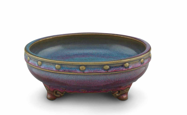 元至明初 钧窰玫瑰紫鼓钉花盆托 天民楼藏品