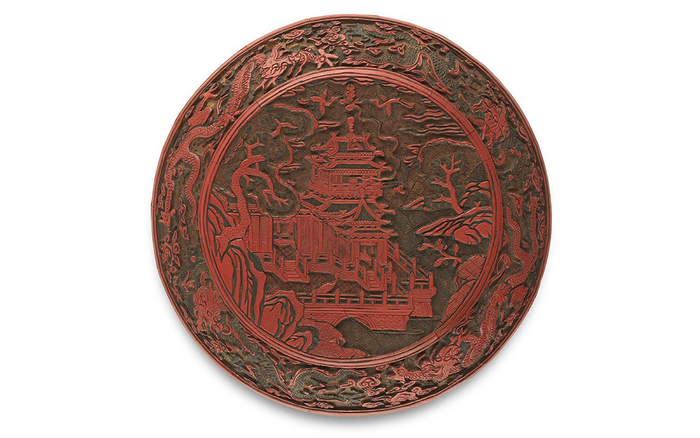 清雍正珊瑚红地洋彩万寿五福大盘 达文堂藏品