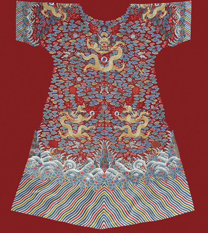 酱色绸绣十二章纹吉服袍料,清乾隆