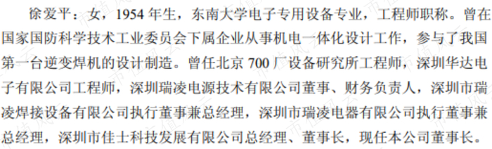 两家公司可以说是颇有渊源。佳士的创始人徐爱平和瑞凌股份实控人邱光都曾在瑞凌电源担任董事。后来瑞凌电源解散后,两人又分别出来创办了瑞凌电器(即佳士科技前身)和瑞凌股份。