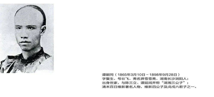 年长八岁的谭嗣同来自一个截然不同的世界,父亲谭继洵官任湖北巡抚。他有一个充满坎坷的童年,十二岁时,在一场席卷北京的白喉病灾难中,他的母亲、大哥、大姐相继丧命。谭嗣同侥幸逃过一劫,却从此迈入不幸。他与继母、父亲陷入了长期的紧张,自比为春秋时的申生公子,夹在父亲与宠妾之间不知如何是好。他的科举之路更充满挫败,尽管父亲为他纳捐获得监生资格,但自 1882 年第一次参加长沙乡试以来,连续七次都名落孙山。不过,他却是同代人中阅历最广泛,读书人中最富侠义精神的一位。他到过西北大漠,也涉足过东南的台湾。他练过武术,长于击剑与单刀,一个目击者见过,他“蹲在地上,叫两个人紧握他的辫根,一翻身站起来,那两人都跌一跤”。他还是个音乐爱好者,“善南北昆曲,能歌乐章”。他沉迷于司马迁笔下的游侠式生活,结交的朋友遍及五湖四海,既有浏阳才俊唐才常,也有大刀王五这样的武林人物。