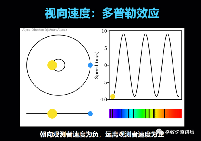 在运动过程中就会产生像我刚才说的火车呼啸的声音,音调变高变低的效应,现在研究系外行星就不是火车发出的声波,而是恒星发出的光波。
