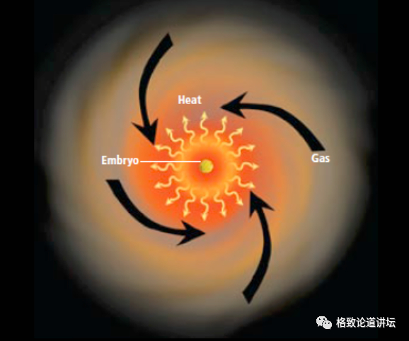 行星胚胎相当于一个石头扔到一个水池里。