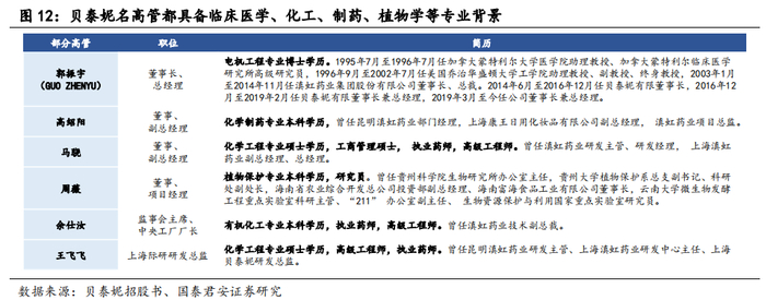 源自药企,高管团队专业实力雄厚。薇诺娜母公司贝泰妮集团董事长郭振宇先生曾担任加拿大蒙特利尔临床医学研究所高级研究员、医学院助理教授,郭董回国后于2003年创立滇虹药业,薇诺娜早期是滇虹药业内部孵化的多个项目之一,2011年滇虹药业改制薇诺娜项目整体剥离出售给贝泰妮有限公司。2014年滇虹药业整体出售给德国拜耳集团后,郭振宇先生担任贝泰妮集团董事长、总经理,原滇虹药业项目总监高绍阳先生、人力资源总监兼总裁办主任董俊姿先生、研发主管马骁先生、上海滇虹研发总监王飞飞先生等一批高管和核心员工也跟随郭董再度创业、共同发展薇诺娜品牌。贝泰妮多名高管都具备化学、植物学相关专业背景,且源于药企的从业经历为薇诺娜积累了丰富的专业渠道资源。