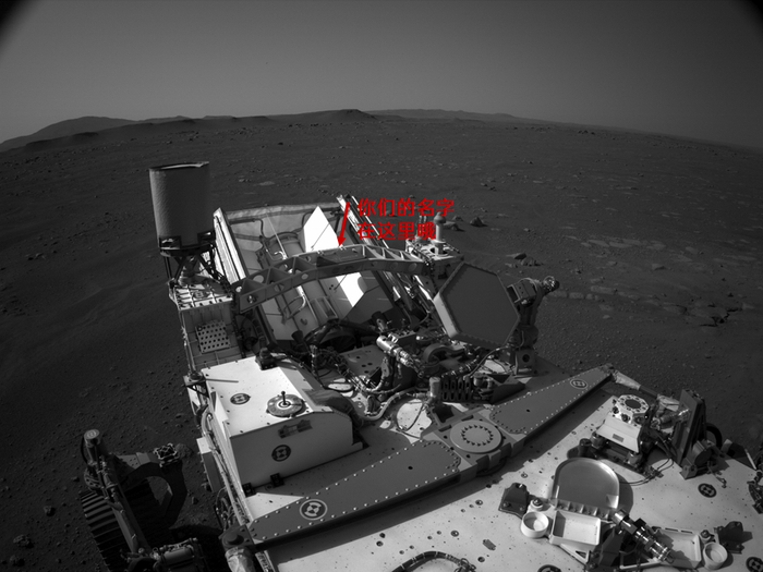 毅力号着陆的第二个火星日,左导航相机(NavCam)清楚拍到了这块“姓名板”。放心吧,大家的名字都在火星安全住下了~