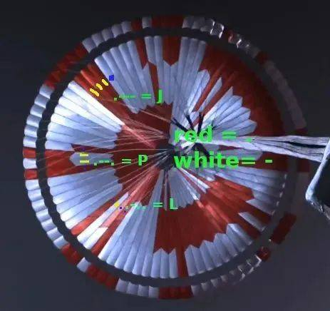 再仔细一琢磨,如果红色代表“点”,白色代表“划”的话,那降落伞这图案里还藏着一组摩斯密码,解译之后是:JPL。