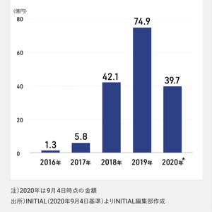 据日本最大的创投企业数据库INITIAL统计,从2016年到2020年9月4日,5年间共有164亿日元(约合10.08亿元人民币)投入VTuber领域。