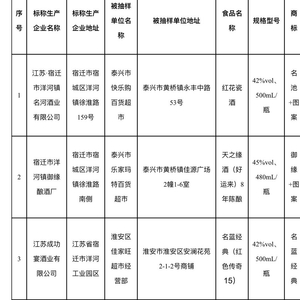 原标题:江苏抽检食品安全,三批次酒不合格,涉氰化物、甜蜜素及酒精度