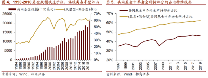 所以总体来看,养老金资产配置结构的变化对基金规模的扩张、以及1990-2010期间美股市场上基金持股占比的扩张具有重要拉动作用。