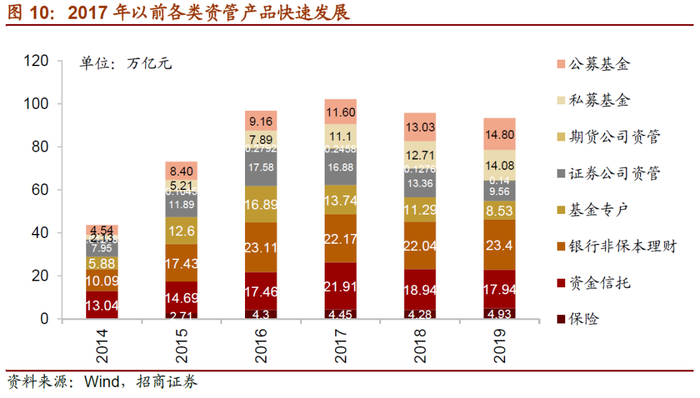 2、驱动力二:资管新规以前各类资管产品的快速发展