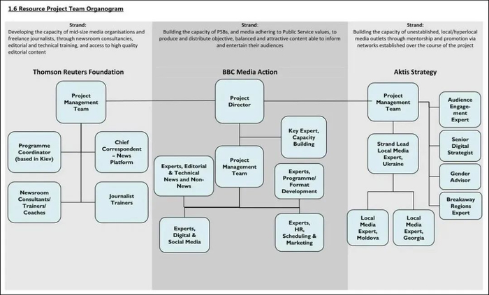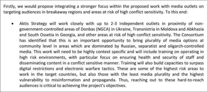 不仅如此,他们还提议参与英国外交部在乌克兰、摩尔多瓦和格鲁吉亚的一个独立媒体宣传项目,路透社和一家如今已经解散情报承包商Aktis也有参与其中。