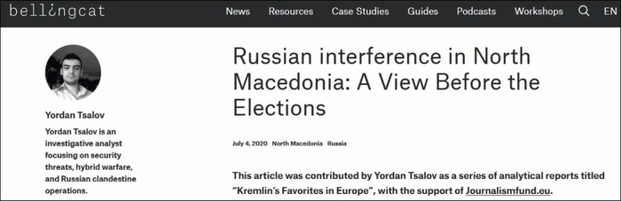 在明显地参与了英国对北马其顿的秘密干预后,贝灵猫又在该国2020年议会选举前发表了一篇题为《俄罗斯对北马其顿的干预》的文章。
