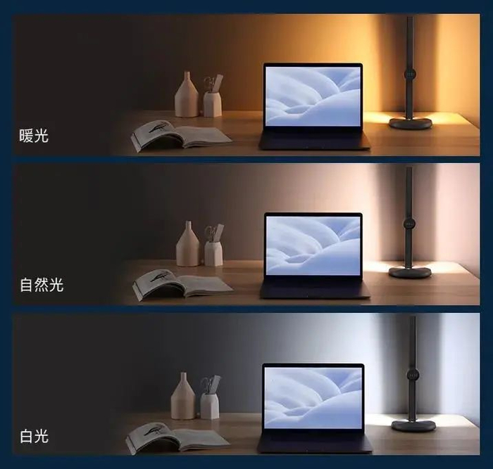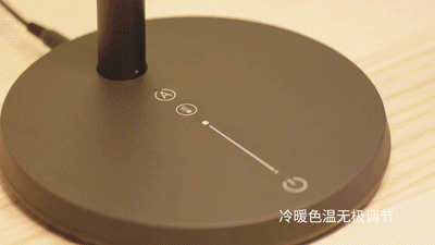 点击底座面板的色温调节触控键就可以对暖光、自然光、白光进行切换,长按实现色温(2700K-6500K)自由调节。