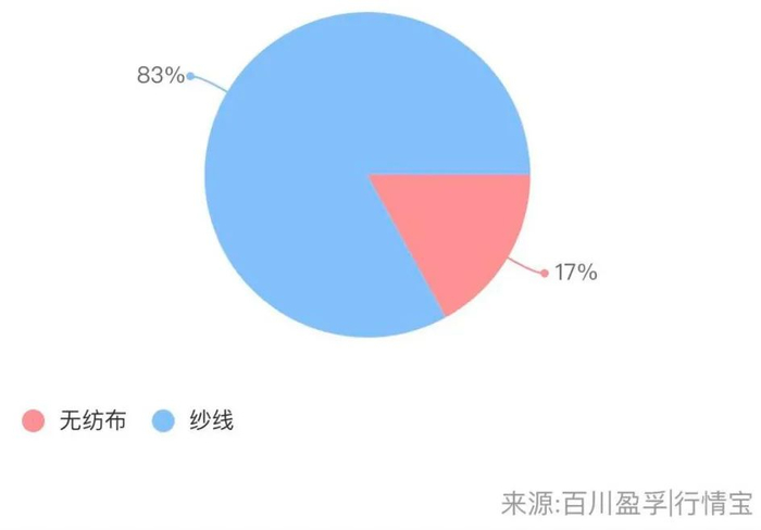 粘胶短纤下游主要应用于人棉纱、混纺纱等纱线以及无纺布领域。来源:百川盈孚