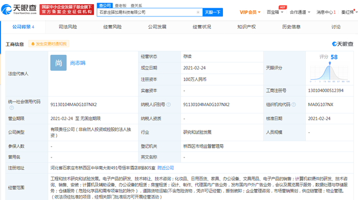 2月26日消息,《电商报》获悉,天眼查信息显示,2月24日,石家庄驿加易科技有限公司成立,注册资本100万人民币,法定代表人为尚志娟,经营范围包含工程和技术研究和试验发展;仓储服务;搬倒装卸;企业管理咨询,市场营销策划,供应链管理等。