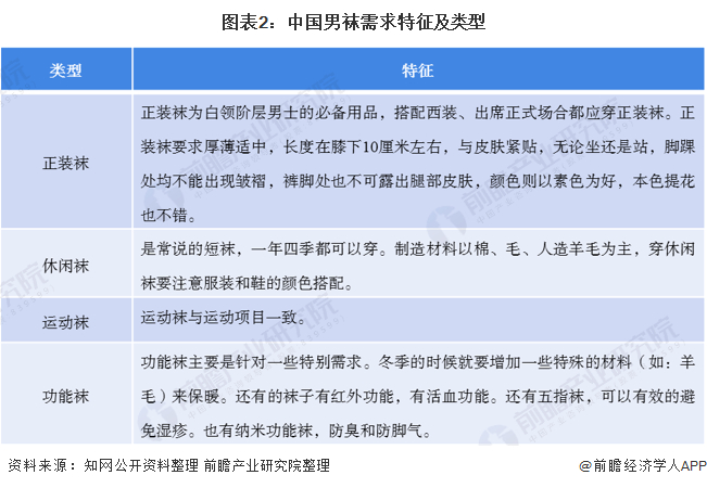 原标题:一文了解2020年中国袜子行业细分产品市场发展现状分析 袜子对男性是日需品 来源:前瞻产业研究院