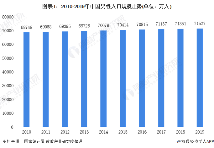 根据国家统计局的数据显示,我国男性人口规模呈现上升趋势。在2010年,中国男性人口规模达到了68748万人,随后上升至2019年的71527万人。