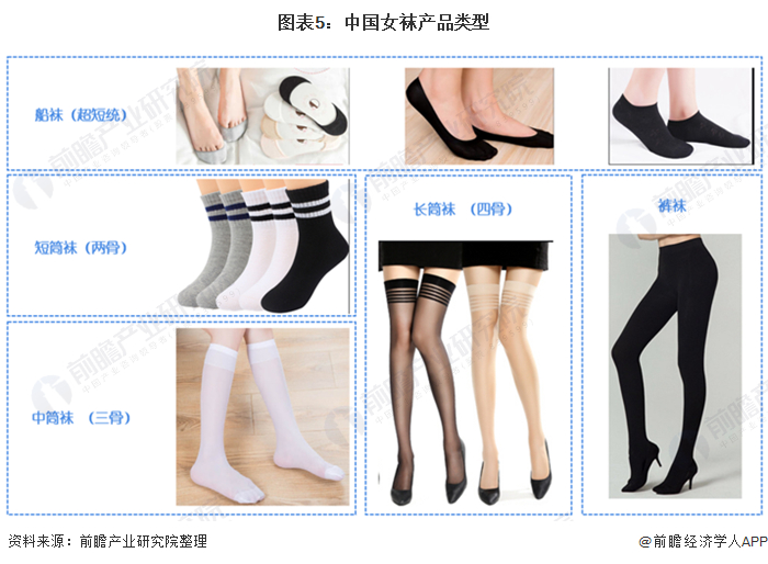 女袜主要按长度来分主要分为船袜(超短袜)、短筒袜(两骨)、中筒袜(三骨)、长筒袜(四骨)以及裤袜。前瞻针对女性群体做出了调查研究,结果显示女性群体的主要需求在船袜(超短袜)和长筒袜(四骨)两种类型。