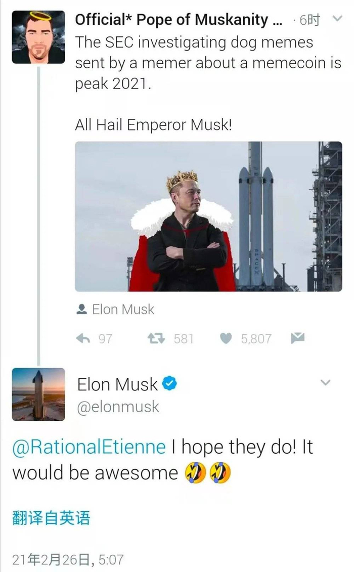 一条市场传闻被认为在其中扮演了重要作用。外媒当天报道称,美国证券交易委员会(SEC)可能将对特斯拉CEO马斯克有关“狗狗币”(DOGE)的推文展开调查。