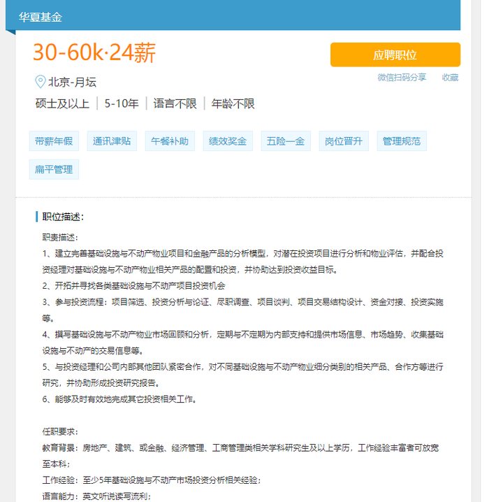 此外,华夏基金也在招聘REITs投资经理,同样要求“至少5年基础设施与不动产市场投资分析相关经验”,最高年薪可达144万元。