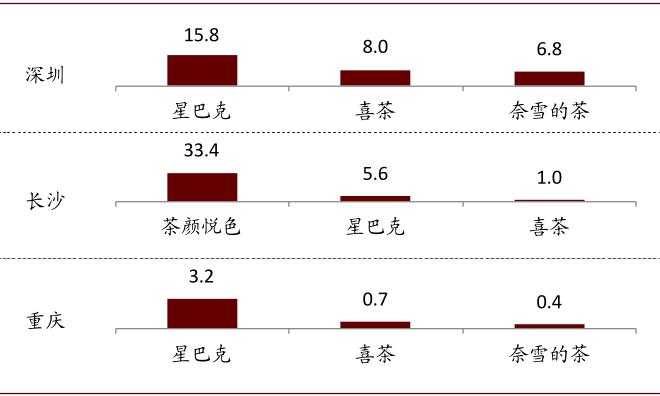 图表: 代表性城市百万人口门店渗透率
