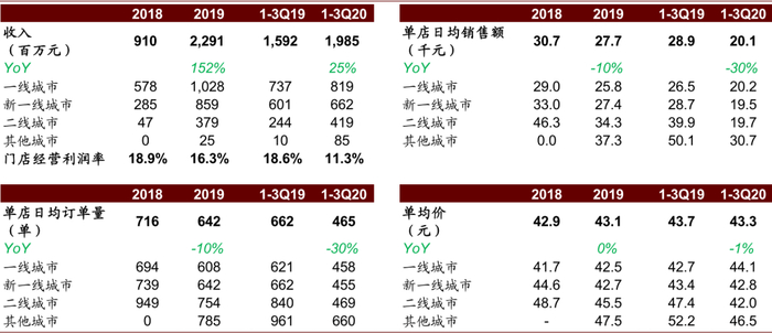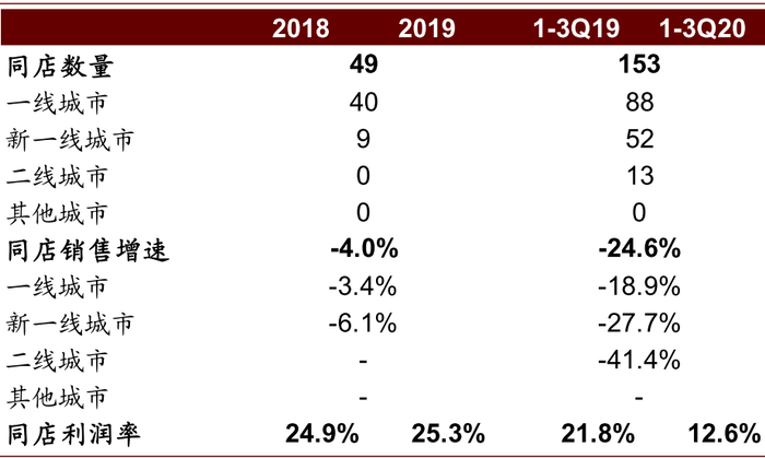 注:同店界定为符合以下条件的店:1)2018年及2019年开业时间均不少于300天,或2)截至2019年及2020年9月30日止九个月开业时间不少于225天(视情况而定)。同店利润为同店销售额扣除同店层面产生的经营成本,包括材料成本、员工成本、租金成本、折旧摊销、水电开支及配送费用。