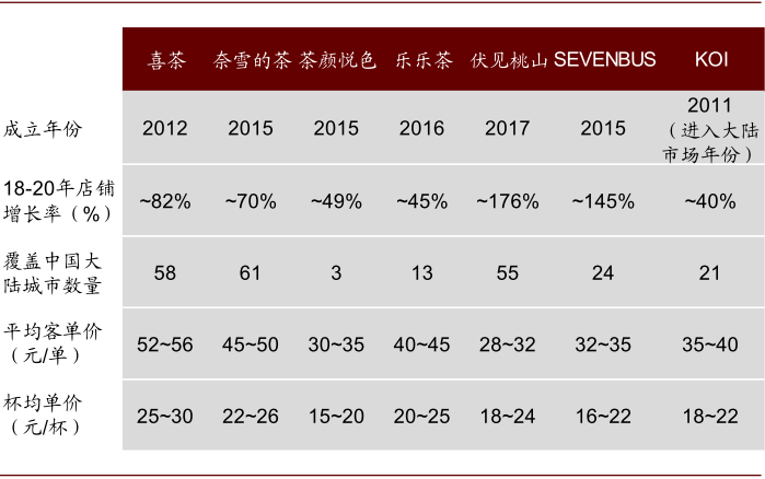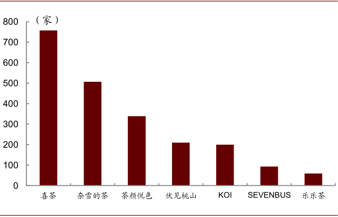 注:KOI、伏见桃山数据截至2020年末,奈雪的茶数据截至2021年2月5日,其余数据截至2021年2月16日