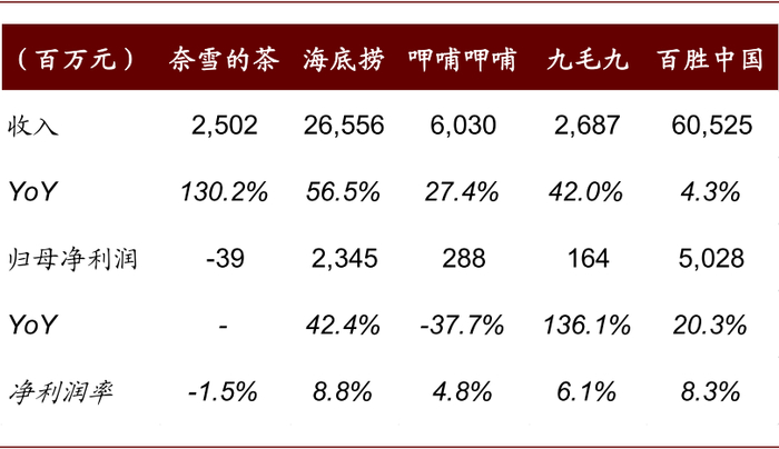 图表: 奈雪的茶及同业公司财务指标对比(2019)