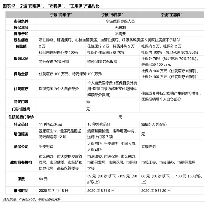 1)“甬惠保”由平安财险于2020年7月率先推出,专注于社保内个人自负部分医疗费用;