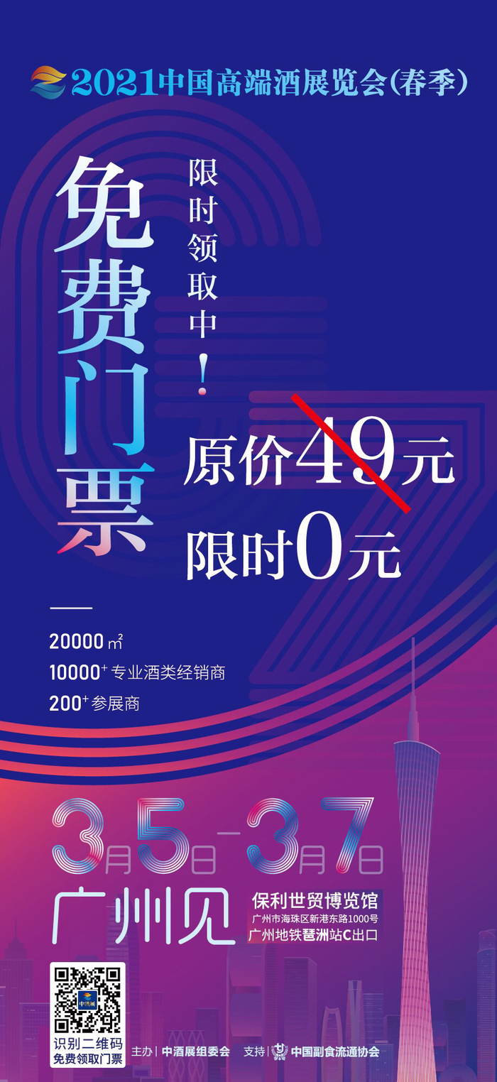 200+顶级酒企、20000+高端名酒!2021财富第一站,来春季中酒展赚大钱!经销商长按图片免费报名