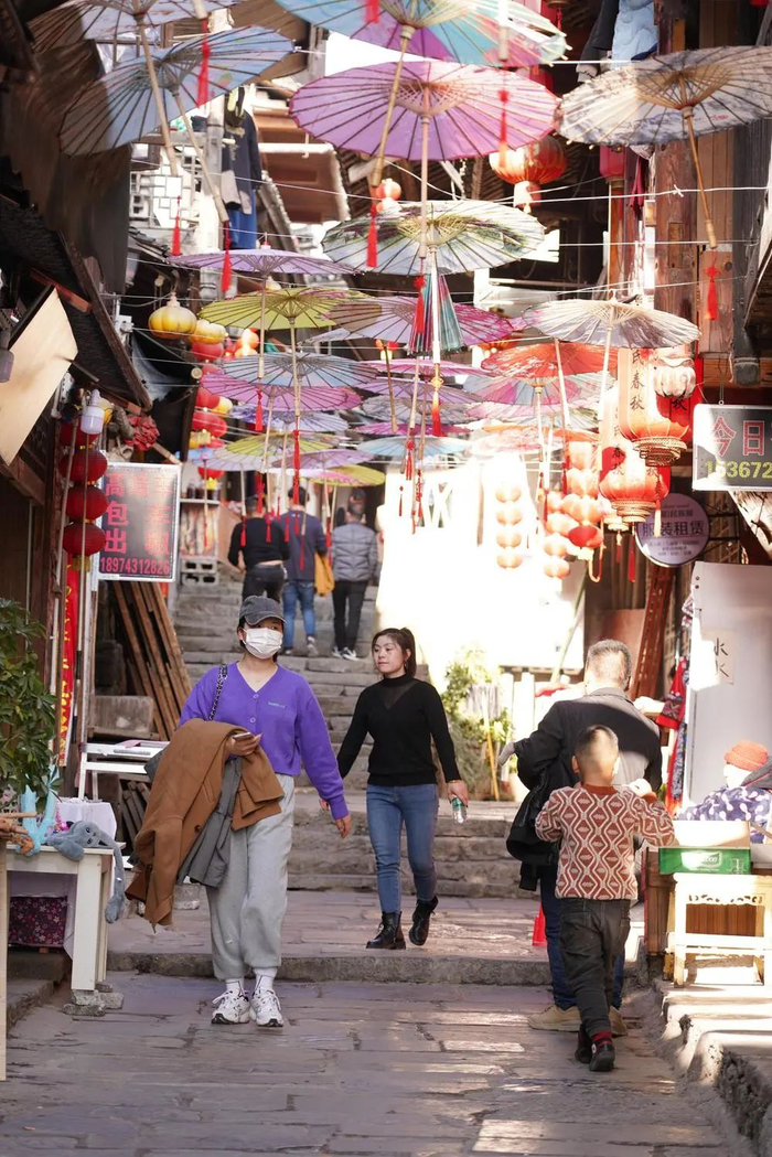 2月23日,游客在芙蓉镇参观游览。永顺县委宣传部供图