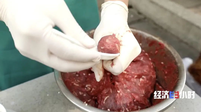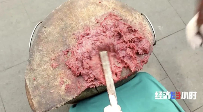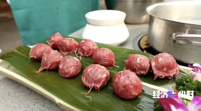 手打牛肉丸师傅张泽鑫,干这一行已经整整八年。为了保证牛肉丸的口感,他必须要在最短的时间内将屠宰场一早送过来的牛肉打成牛肉丸,时间通常不超过4小时。