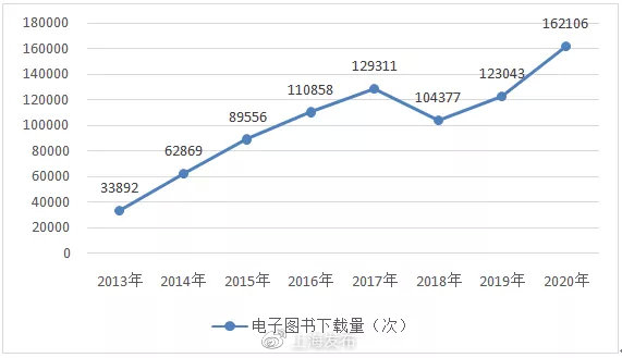 2013-2020年度图书馆电子图书下载量统计
