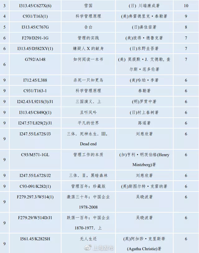 (原题为《沪上大学生最爱看哪些书?13所院校年度图书馆大数据出炉》)
